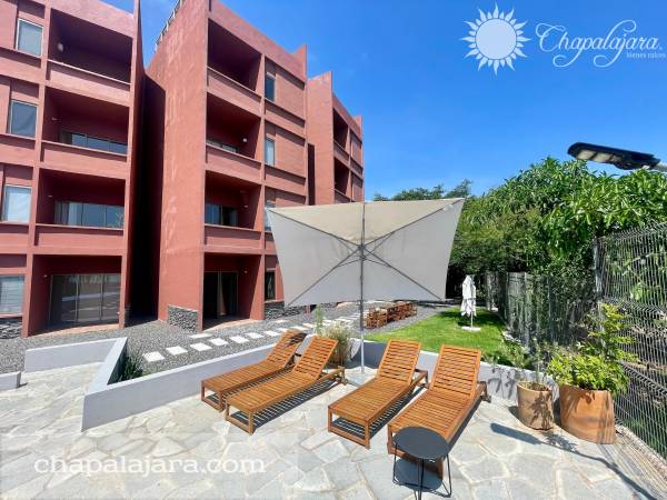 Discover apartment 201, located on the first floor of an exclusive condominium in front of Lake Chapala in San Cristóbal Zapotitlán. This cozy 57 m² apartment offers 2 bedrooms and 2 full bathrooms, designed to maximize comfort and space. Its prime location facing the common area pool and its south-north orientation ensure excellent natural light and pleasant temperatures throughout the year. Enjoy life in this condominium, which features common areas such as a swimming pool, garden, and sunbathing decks, all at a very attractive price.