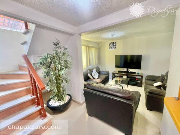 On the ground floor, you will find a practical living and dining room, a functional kitchen, a covered terrace perfect for enjoying the Chapala climate with access to a large garden, ideal for family gatherings and outdoor activities. A full bathroom on this floor offers great convenience for your guests and the outdoor area. Additionally, it has a practical storage room and a laundry area.