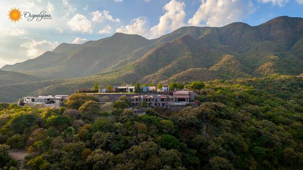 La hermosa entrada con un techo de bóveda de ladrillo expuesto y una magnífica escalera marca la pauta para los espacios interiores y lo invita a entrar, con un techo de doble altura y vistas espectaculares del lago Chapala y las montañas de la Sierra Madre.