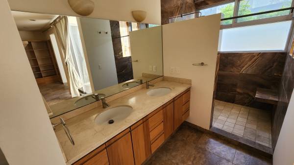 Located close to Technology Park, on the road to PV, between Rancho Contento and Periferico. 4 Bedrooms, one on the ground floor. Master with patio, walk-in closet, shower and bath, excellent ventilation. Family room upstairs. Studio on the ground floor. Living room with bar. Kitchen with large pantry. Open floor plan for Kitchen-Dining-living. Covered terrace with garden, bbq and sink. Parking 4 to 5 cars. Maids room, laundry room and patio. Solar panels, automatic gas water heater. Excellent well water. Water pressure. Fish pond. Condo includes access to various parks including kids play area, basketball court, football field, ample running lanes. Condo has back entrance to avoid peak hour traffic. Condo fees not included ($3,207 pesos pesos month). Casa Club with pool and tennis courts not included ($1,500 / Mo). 330 sqm