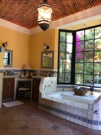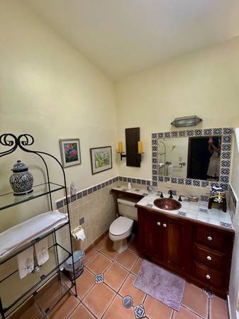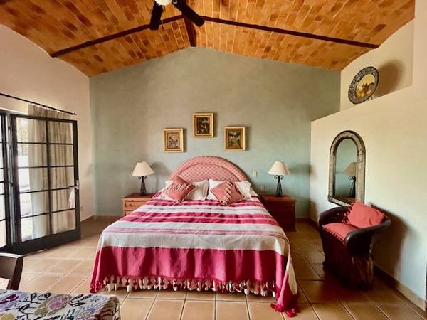 Come escape the summer! Our Ajijic guest home overlooks Lake Chapala, with one of the best climates in the world. This 2-bedroom, 2-bath home is fully equipped and features a lush garden bordered by high rock walls, beautiful views, private entrance, and off-street parking. Rent includes electricity, filtered water, high-speed internet and WiFi, weekly house cleaning and gardener. Private swimming pool access can be arranged. Available monthly from mid-April to end of October. Sorry, no pets and no smoking.